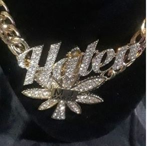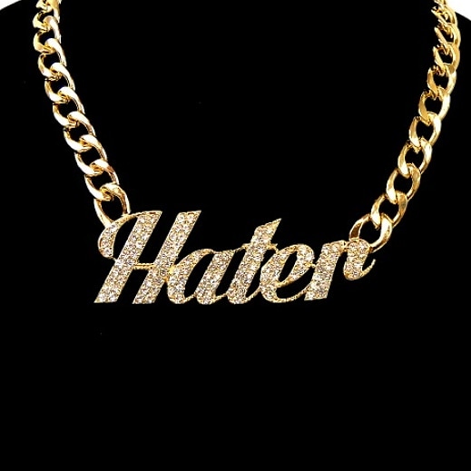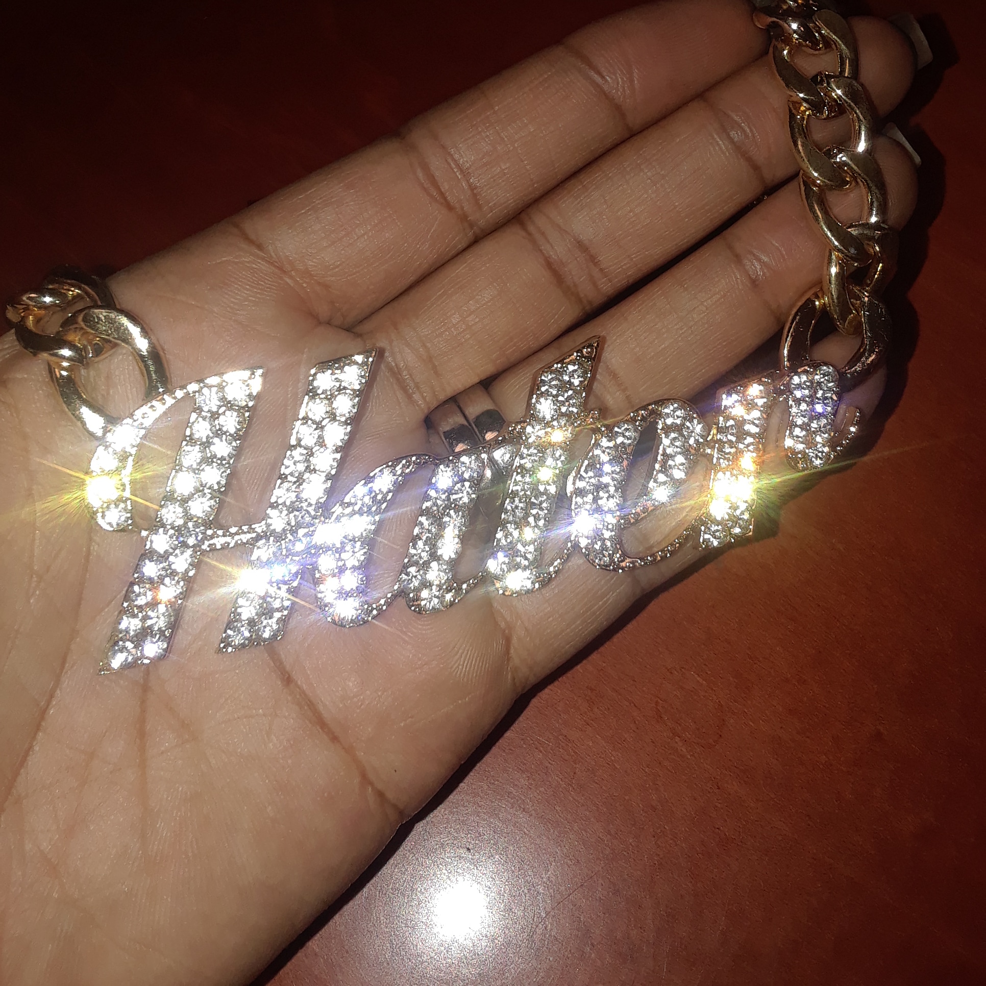 18 inch rhinestone encrusted gold plated necklace. Pendant is 4 inches wide.