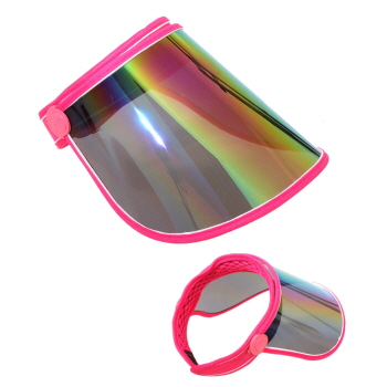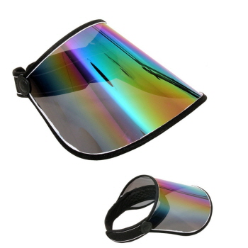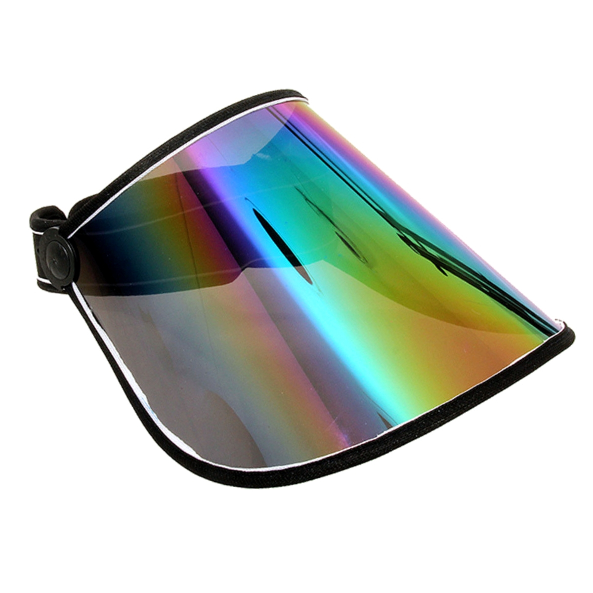 Rainbow Iridescent Sun Visor with Adjustable Angle. Black Trim and Head strap. Includes Neck Cord. 7.5 inches long