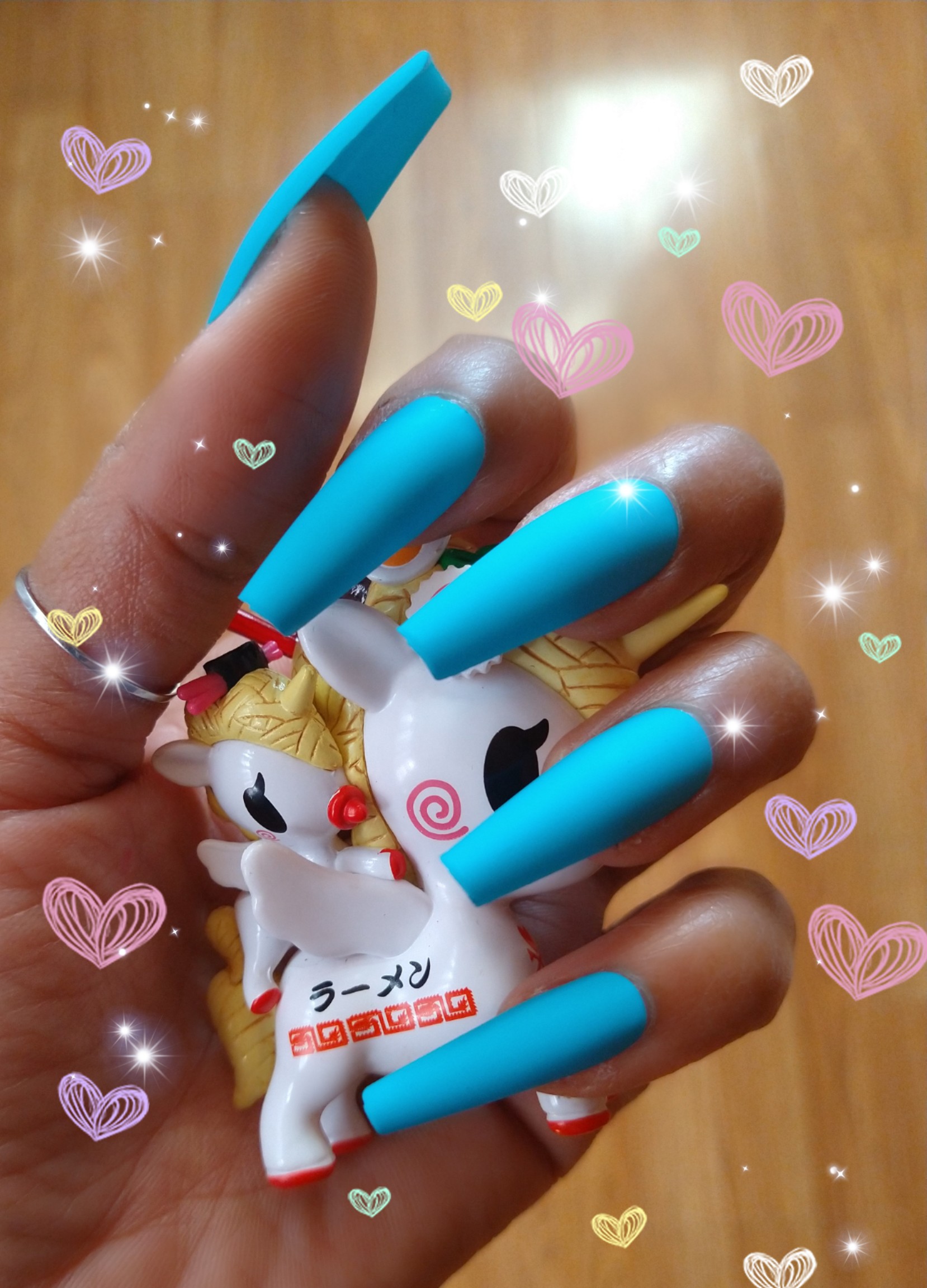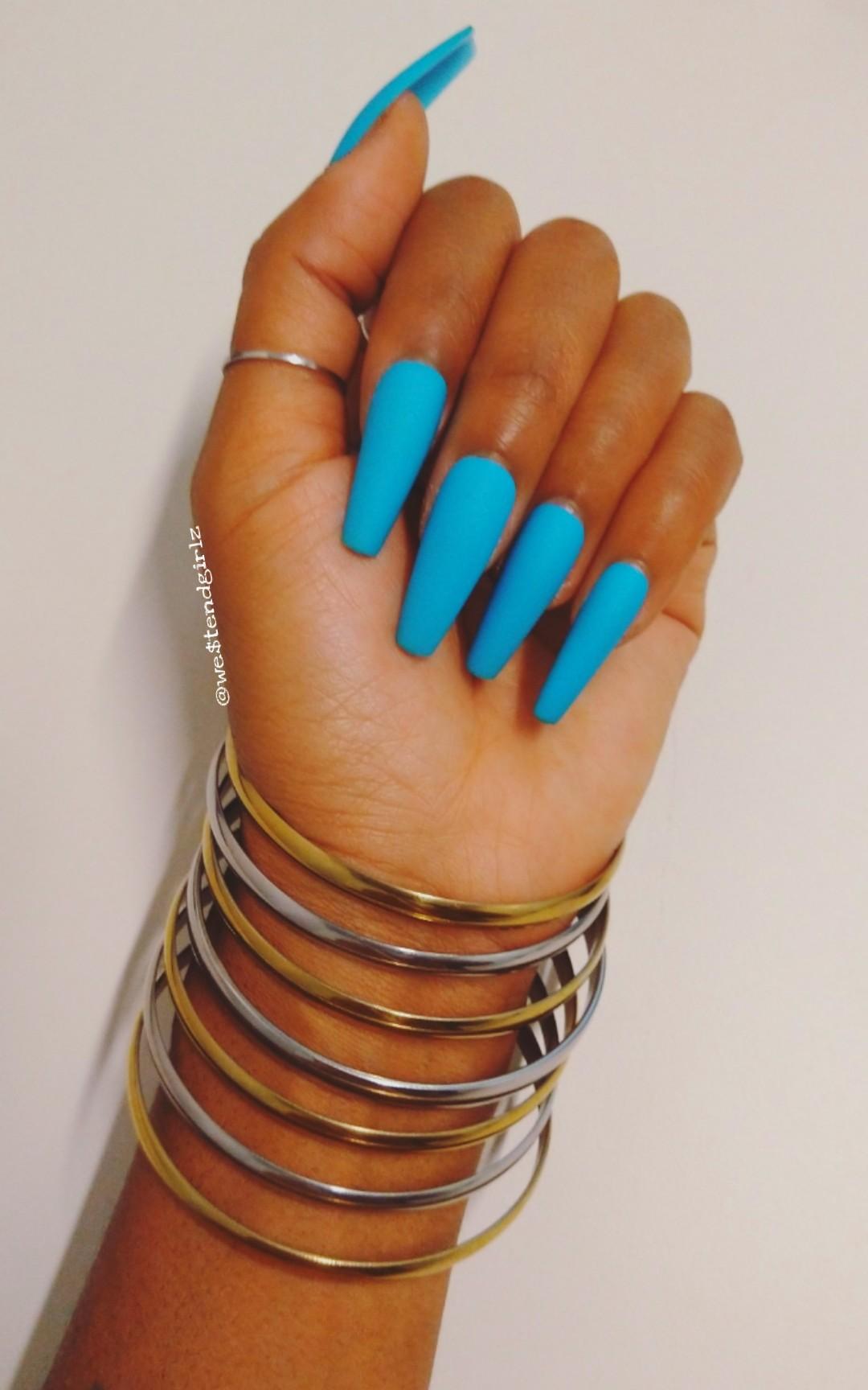 24 matte teal coffin shaped nails. Nail glue included. So sexy, and so fresh.