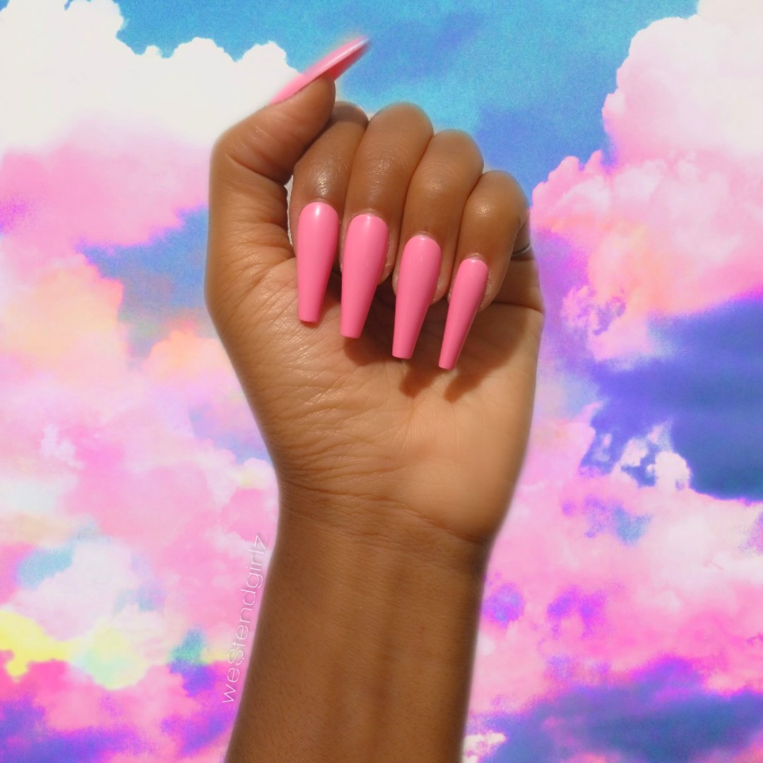 Set of 24 beautiful long tapered pink nails. Glue or nail tabs available upon request at no charge. 💕🍭✨💤