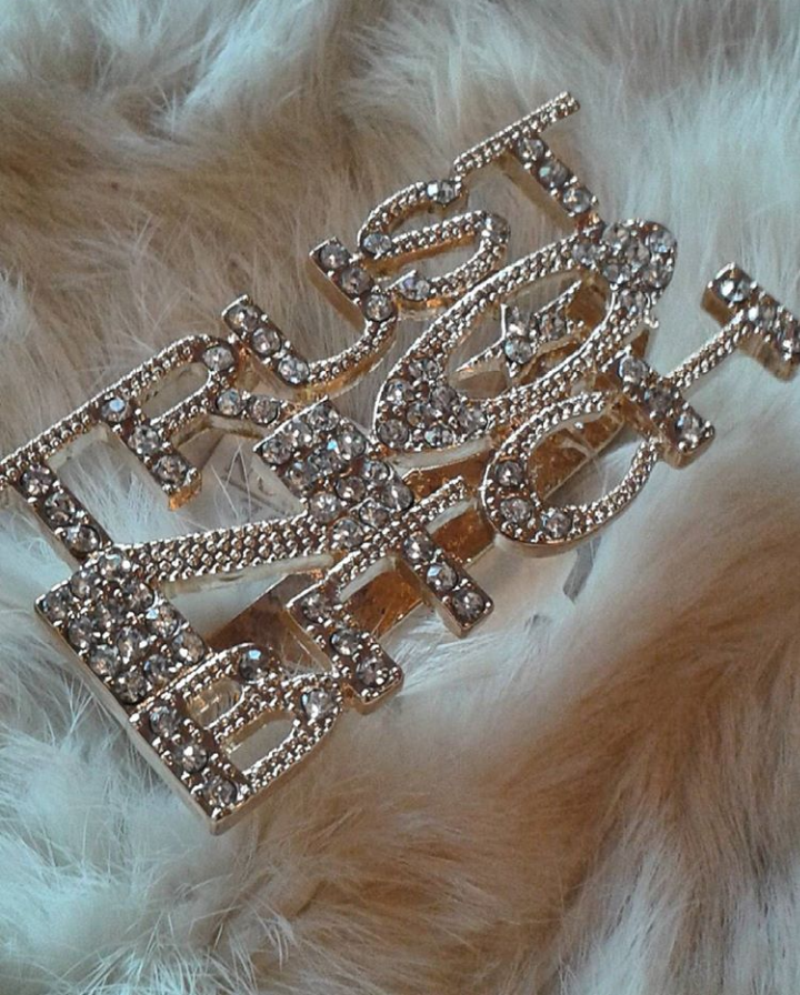Gold plated 3 finger ring. 3 INCHES. RHINSTONES
